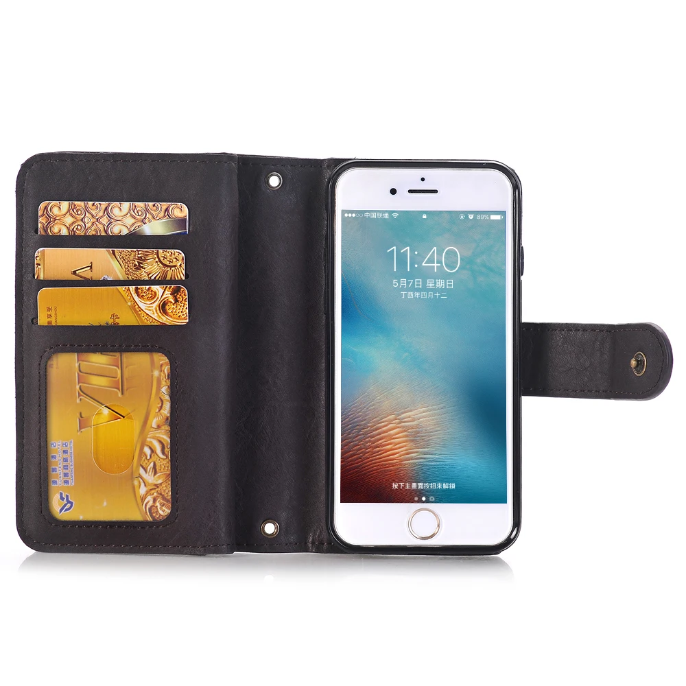 Wallet Holster Phone Case Retro PU leather+TPU Cover 2 in 1 Multifunction Bags For iPhone 5 5c 5s se 6 6s plus 7 plus 1-plus-5-cover