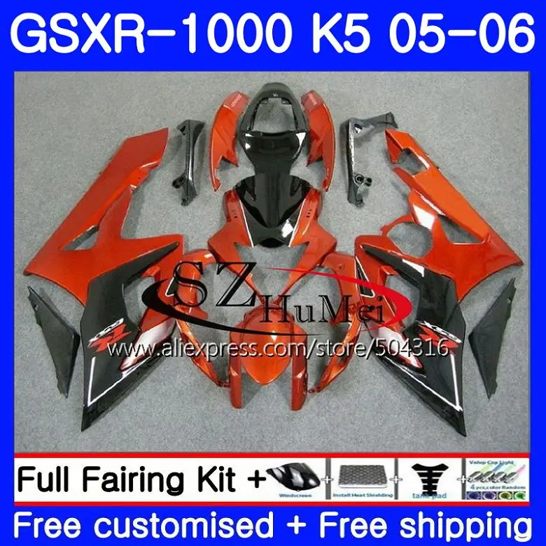 4.8 104 Video Reviews Bodywork For SUZUKI GSX-R1000 K5 GSXR1000 05 06 Body 37NO.1 GSXR-1000 GSXR 1000 05 06 GSX R1000 2005 2006 Fairings Orange black 06-gsxr-1000-fairings